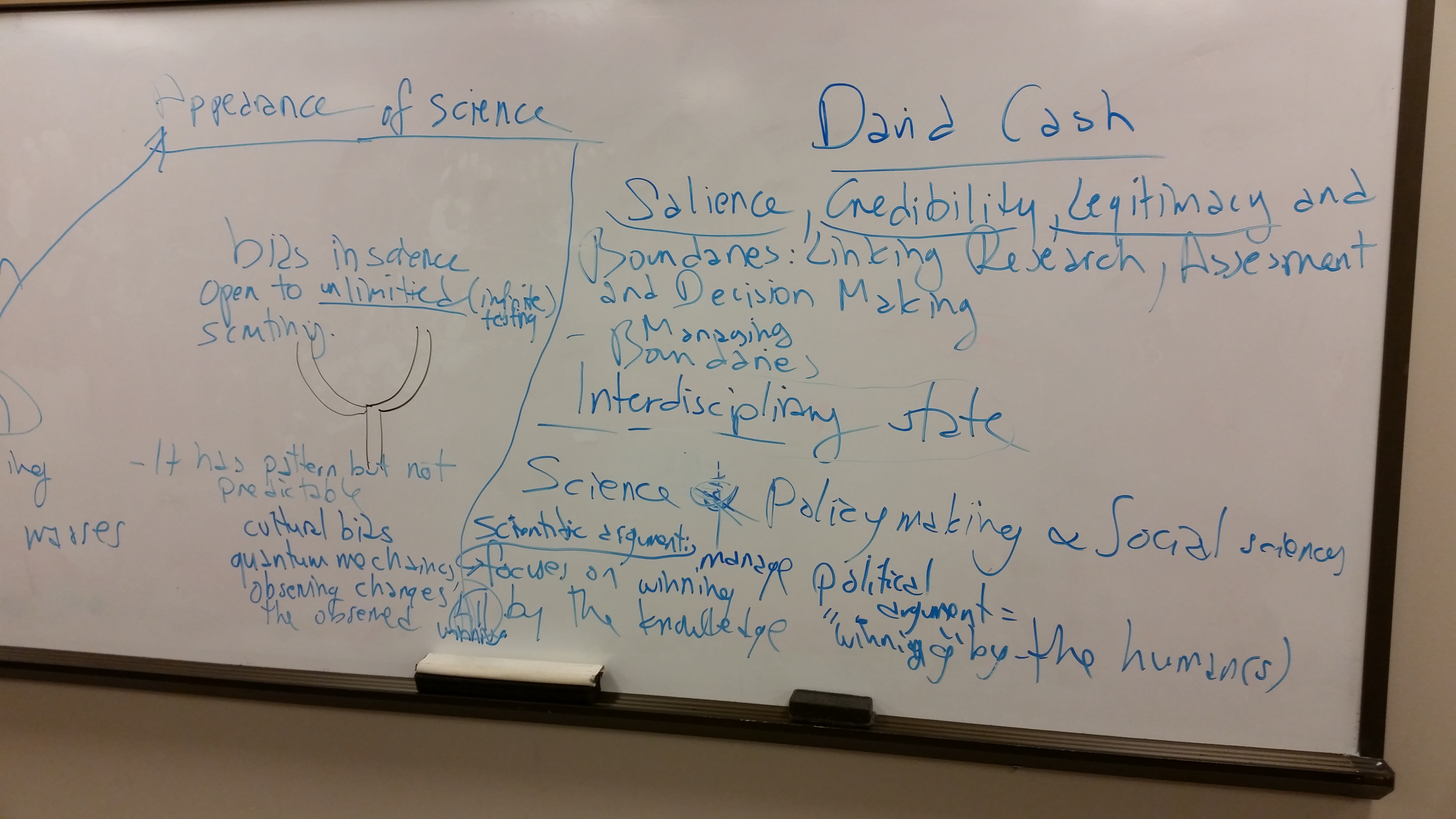 The session started with a brief summary of the reading material and a round in which the students commented on their reading choices. The main part of the deliberations centered on the openness of societal stakeholders, including scientists, to knowledge and their ability to develop wisdom based on knowledge. Wisdom is what human beings need to manage their lives and to achieve a sustainable lifelihood. A key conlusion was that wisdom is the result of life experience and therefore dominated by those experiences that worked for humans and enabled them to manage their life. We considered as examples politicians in different systems. In systems, where the voters value the knowledge and expertice of a candidate, where a person gets elected based on the personality, knowledge, and charisma, the elected persons will value these aspects highly. In such a system, an elected person is more likely to respects knowledge and expertise. In a systems, where success depends mainly on the money available for the promotion of a candidate and the support this candidate gets from sponsors, an elected person is likely to value money more than knowledge and expertise.