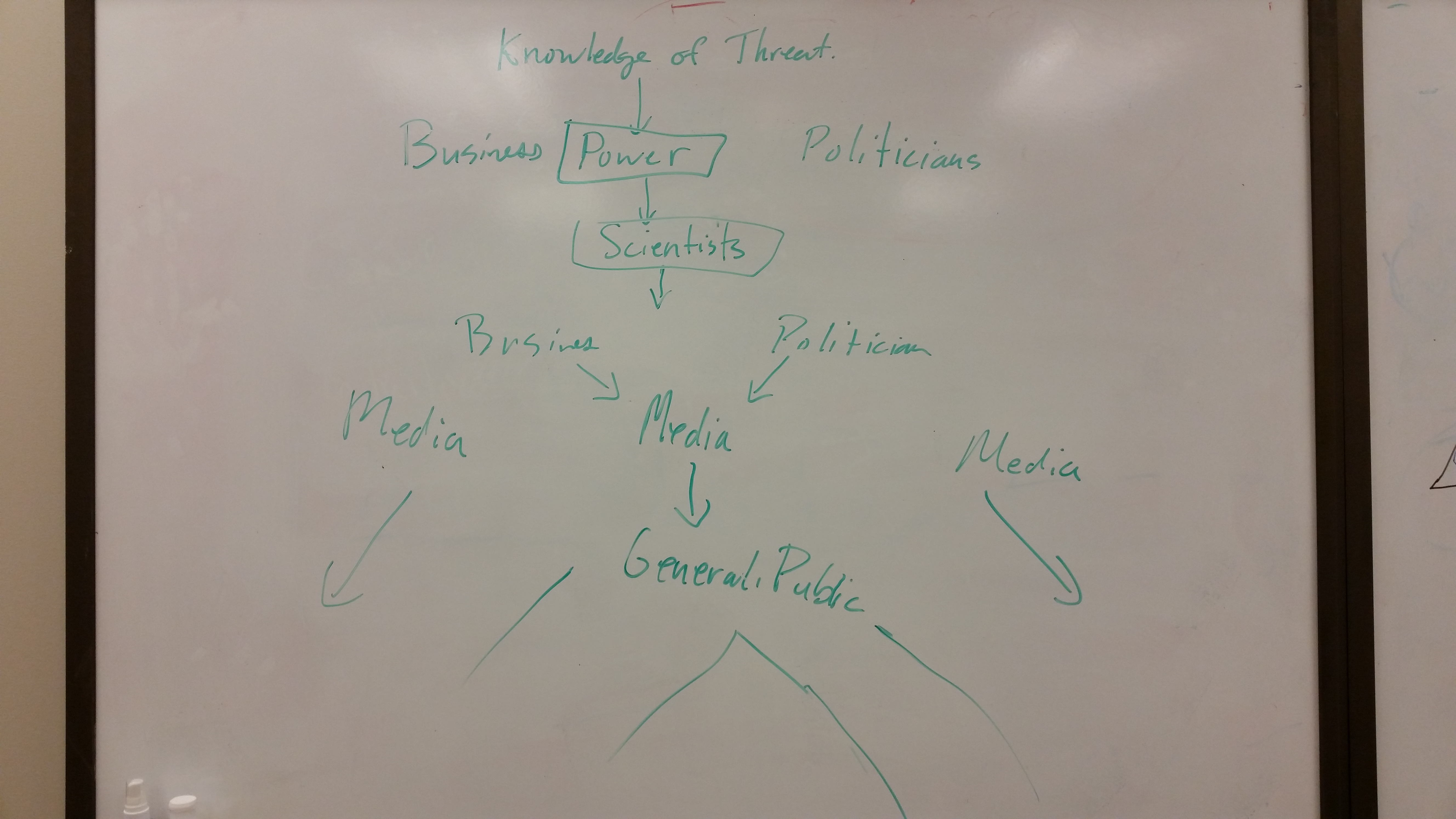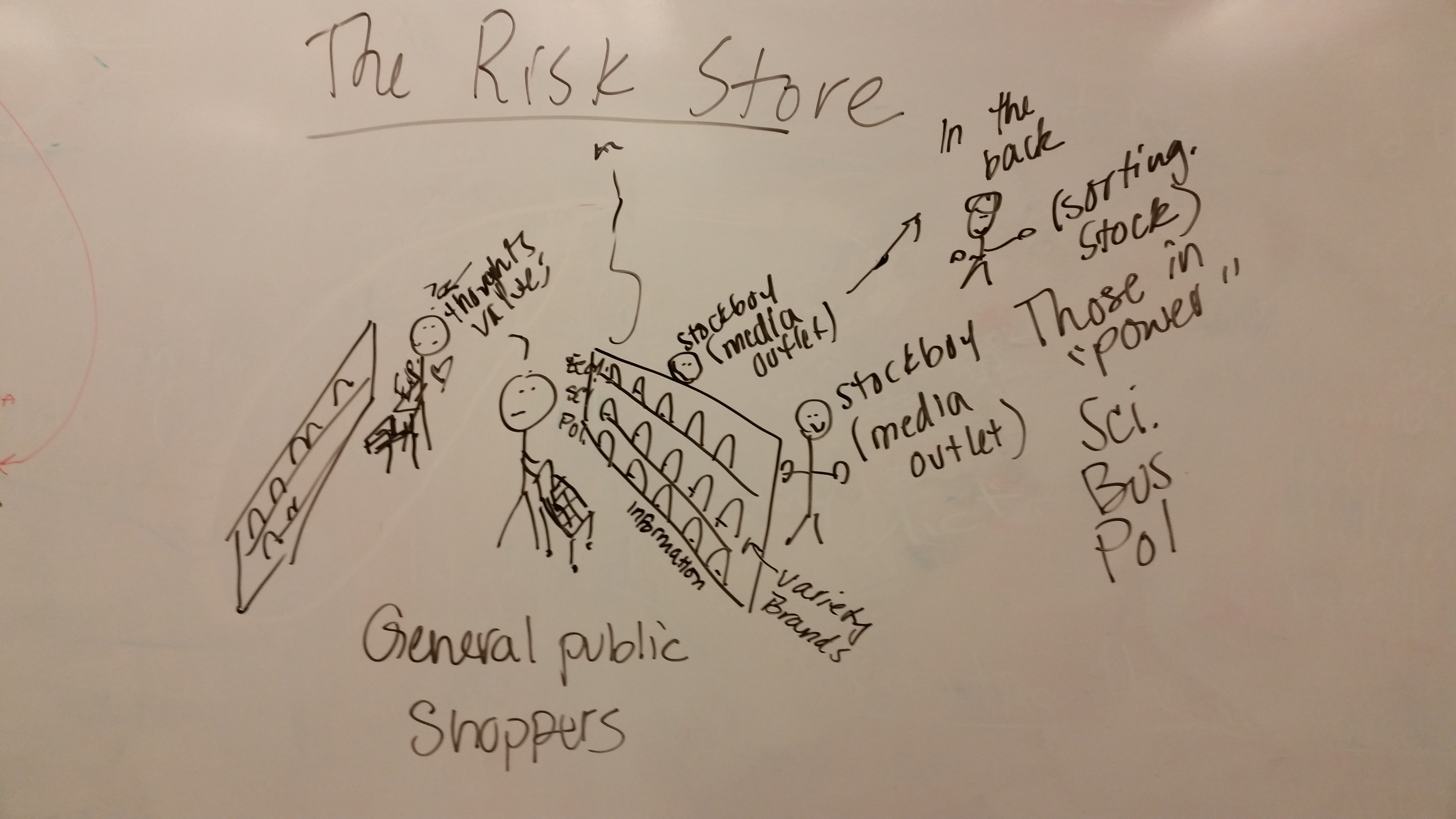 The remaining part of the session was used to discuss the conceptual models for the decision making processes in a community facing an emerging threat. Each student drew his or her model and the white board and gave an explanation of the model (see below).