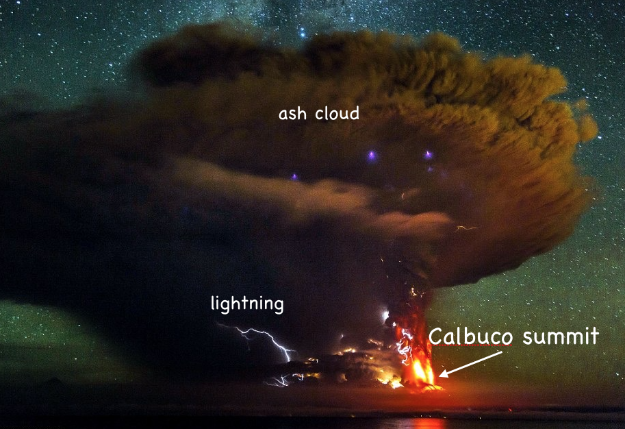 TephraExplosive eruptions produce pulverized lava and rock fragments, called tephra. Large blocks are called volcanic bombs. Fine tephra particles form ash plumes and ash clouds. Explosive expansion of hot gases from volatile-rich magmas pulverizes the rocks around the volcanic vent into fragments, called tephra, and forces them out of the volcano at ballistic speeds (up to 200 m per second). Large blocks, called bombs, land close to the vent (Fig. 10a), but the hot gases carry millimeter-sized and smaller particles, known as ash, in plumes that reach high altitude before spreading to form an ash cloud (Fig. 10b). Lightning bolts are caused by electrically charged wet ash in the cloud (Fig. 10c). The ash is deposited downwind from the volcano, with the thickest deposits nearest the vent. Where an ash plume extends to the upper atmosphere or stratosphere, the particles are kept aloft by high altitude winds and may circle the Earth for months or years, sometimes noticeably dimming sunlight.