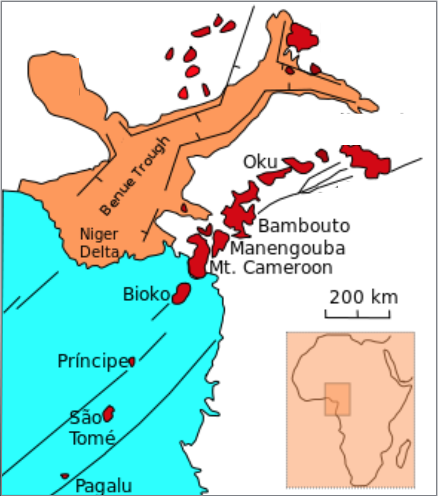 Catastrophic Gas EmissionCarbon dioxide from Cameroon’s Oku volcanoes accumulated under Lake Nyos before suddenly asphyxiating villagers and their livestock. A devastating burst of volcanic gas occurred on August 21, 1986, when more than 1,700 people and 3,500 livestock living near Lake Nyos, Cameroon, were found asphyxiated. Clues to the deaths, which occurred overnight without any property or vegetation damage, were found in the lake itself. Instead of its normal clear water, the lake looked as though it had been vigorously stirred (Fig. 18a). Carbon dioxide (CO2) from the underlying Oku volcanic field (Fig. 18b) had been building up in the lake bottom sediments. It is thought that a small landslide into the lake caused CO2 bubbles to suddenly rush to surface, just like the famous diet cola and candy experiments (Fig. 18c). The dense CO2 gas stayed close to the ground during the cool night, asphyxiating those living around the lake shores. In the morning, warmed by the Sun, the gas dispersed by convection, leaving no trace.
