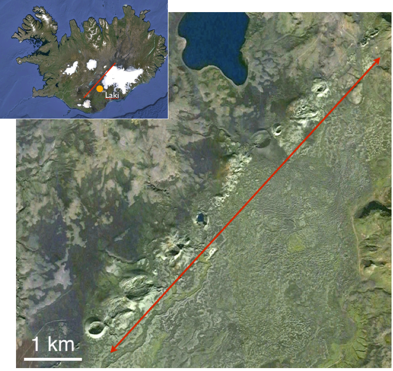 Iceland’s Dry Fog Of 1783Toxic gases from the Laki eruption of 1783-84 caused a widespread dry fog that reduced sunlight, produced acid rain, and damaged crops. Beginning in May 1783, lava eruptions from the Laki Fissure on the Reykjanes Ridge, southern Iceland (Fig. 26a), destroyed several farms and villages. However, the most devastating effect of the eruption was a release of toxic gases in the form of a dry fog that blanketed Iceland and extended to much of the northern hemisphere in the summer of 1783 (Fig. 26b). Solar energy in the fog-covered regions was greatly reduced, making the winter of 1783-4 the coldest in 250 years. Unlike a water-based fog, the ash- and sulfur-rich haze did not evaporate in sunlight. Acid rain and poisonous fumes severely damaged Icelandic grasslands and crops, decreased the Icelandic fish catch, and caused 50% of Iceland’s livestock to die within the year. Thousands of Icelanders died as a result of famine and respiratory problems, reducing the population of the island by 25%.