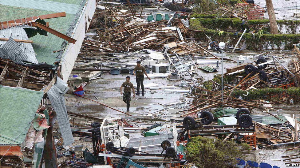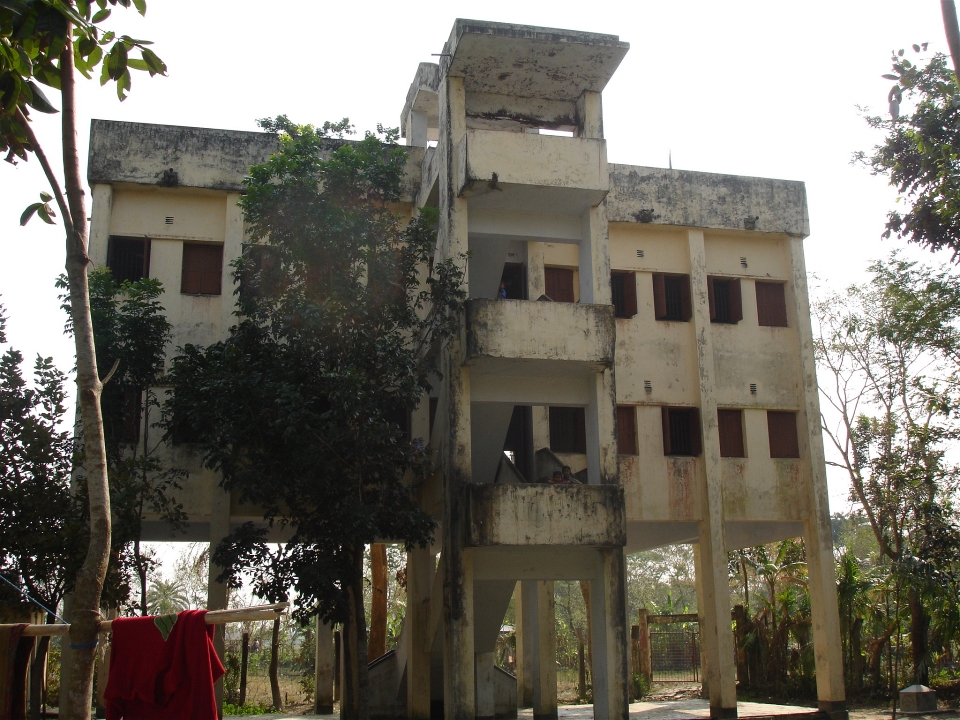 Storm SheltersStorm shelters, as long as they are elevated, are effective options for flood-prone regions. In 1970, more than 300,000 died in one of the worst natural disasters of recorded history when floods caused by Tropical Cyclone Bhola impacted the Ganges Delta region. The number of direct versus indirect fatalities caused by the storm remains controversial, but the devastation led Banglasdesh to build elevated cyclone shelters (Fig. F25a) and to create emergency preparedness plans to reduce the impact of flooding from tropical cyclones. Storm shelters are not always effective and may even add to the death toll if they are not elevated above river flood crest or storm surge heights. In November 2013, many people on Leyte Island in the Philippines took refuge in schools and government buildings – structures that were meant to act as storm shelters – to avoid Typhoon Haiyan. However, Haiyan’s 5 m-high storm surge flooded these buildings (Fig. F25b), adding to the number of fatalities caused by the storm.