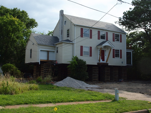 In Norfolk and Hampton Roads, a number of household have invested in increasing the freeboard of their houses by individually raising their houses. However, while this adaptation to increased frequency and levels of flooding will reduce the events that actually flood the lower floor of the raised houses, it can not reduce the impacts of the frequent loss in accessibility of the property due to the adjacent streets being increasingly flooded.