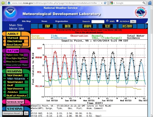 ![]() At the time the pictures were taken, the water level at Sewells Point was at 3.5 feet, a level that is frequently exceeded causing significant flooding in the neighbourhood of the raised house. |